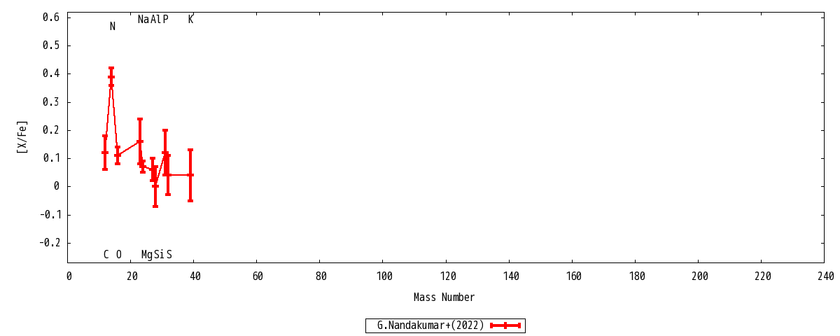| Teff : 4442+-50 | log g : 2.5+-0.15 | vturb : 1.5+-0.1 |