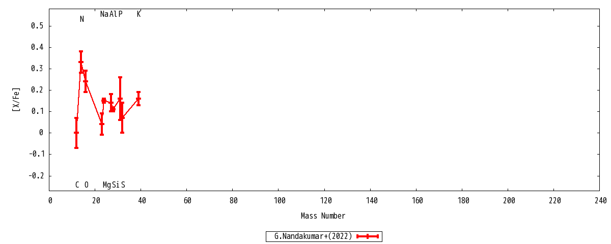 | Teff : 4742+-50 | log g : 2.5+-0.15 | vturb : 1.6+-0.1 |