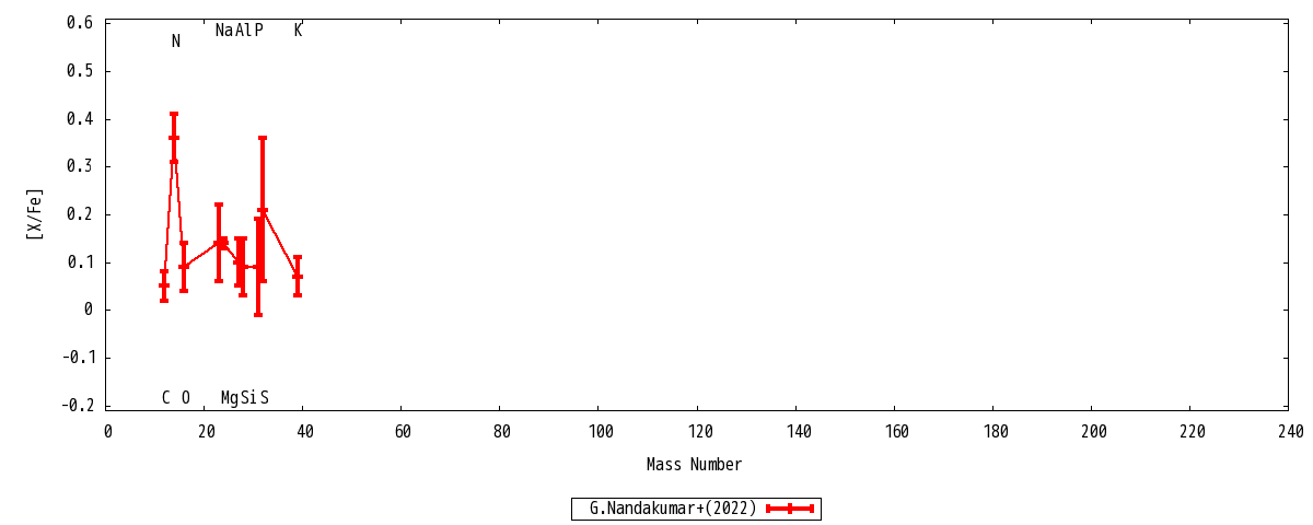 | Teff : 4488+-50 | log g : 2.2+-0.15 | vturb : 1.6+-0.1 |