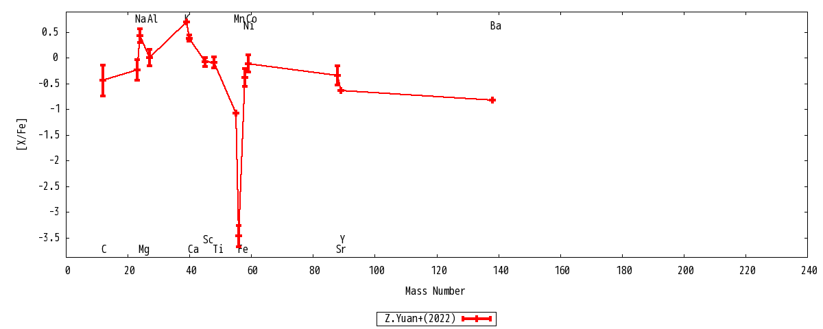 | Na | 2 | -2.76+-0.20 | ... | ... | -3.70+-0.20 | -0.23+-0.20 | 2.54+-0.20 | Na |