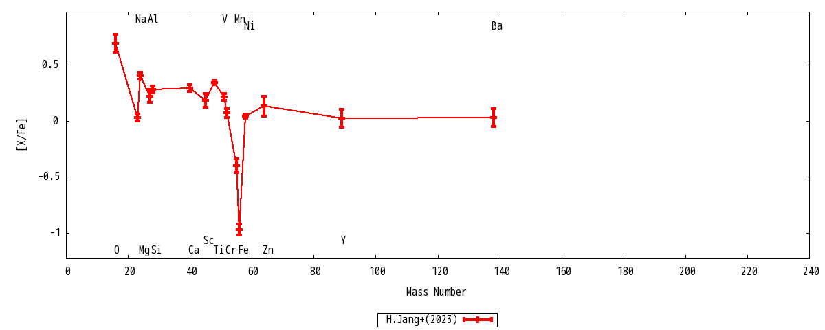 | Mg | N/A | ... | 0.42+-0.03 | ... | -0.57+-0.03 | 0.40+-0.03 | 7.03+-0.03 | Mg |