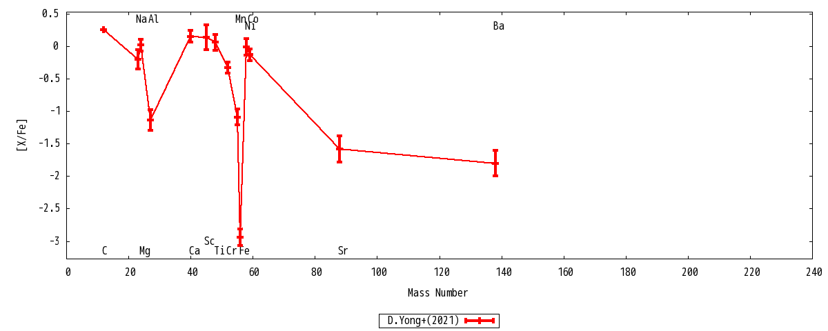 | Ba II | 2 | ... | -1.80+-0.20 | -2.56+-0.20 | -4.74+-0.20 | -1.80+-0.20 | -2.56+-0.20 | Ba II |