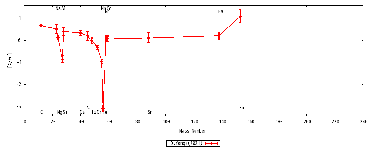 | Ba II | 4 | ... | 0.22+-0.15 | -0.70+-0.15 | -2.88+-0.15 | 0.21+-0.15 | -0.70+-0.15 | Ba II |