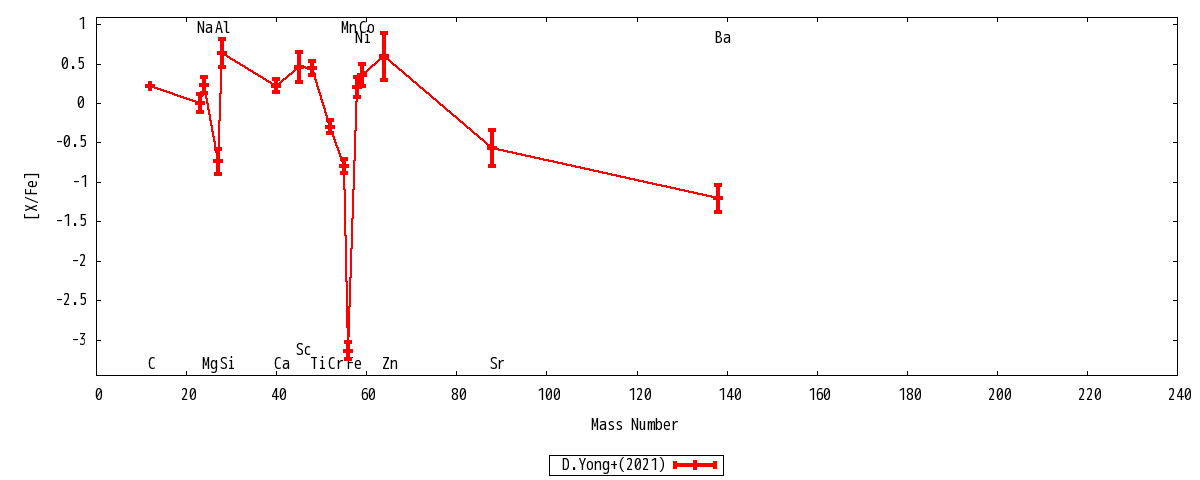 | Ba II | 2 | ... | -1.22+-0.17 | -2.17+-0.17 | -4.35+-0.17 | -1.21+-0.17 | -2.17+-0.17 | Ba II |
