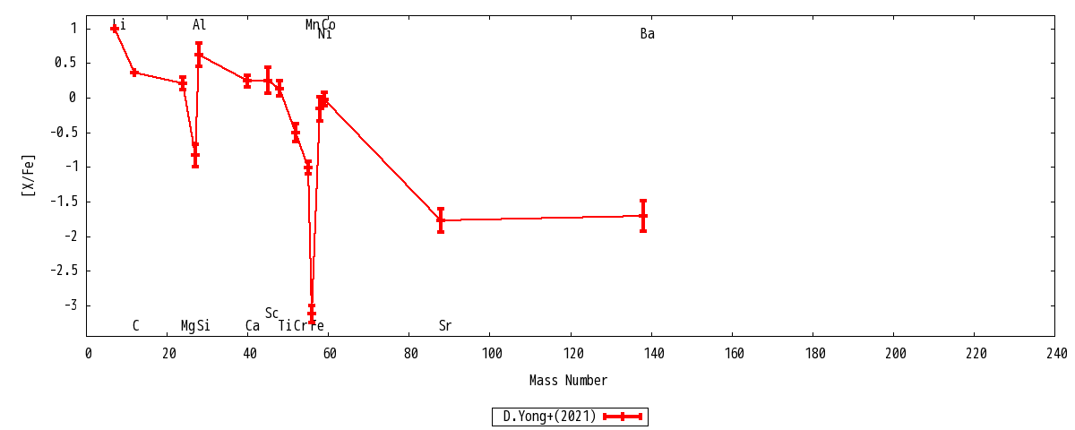 | Ba II | 1 | ... | -1.71+-0.22 | -2.65+-0.22 | -4.83+-0.22 | -1.71+-0.22 | -2.65+-0.22 | Ba II |