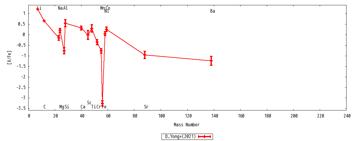 | Ba II | 1 | ... | -1.24+-0.21 | -2.32+-0.21 | -4.50+-0.21 | -1.24+-0.21 | -2.32+-0.21 | Ba II |