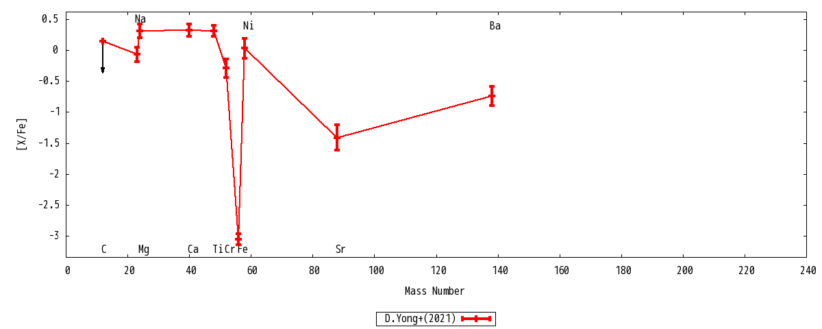 | Ba II | 2 | ... | -0.74+-0.15 | -1.61+-0.15 | -3.79+-0.15 | -0.74+-0.15 | -1.61+-0.15 | Ba II |