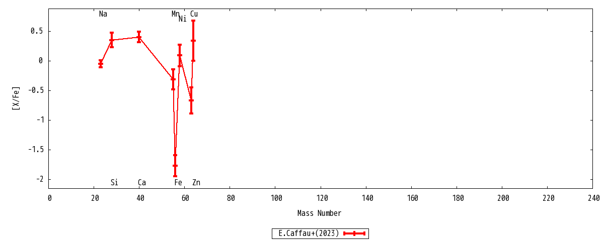 | Zn I | 2 | ... | ... | 3.13+-0.34 | -1.43+-0.34 | 0.34+-0.34 | 3.13+-0.34 | Zn I |