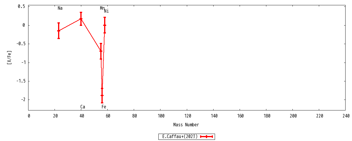 | Ca I | 13 | ... | ... | 4.62+-0.17 | -1.72+-0.17 | 0.17+-0.17 | 4.62+-0.17 | Ca I |